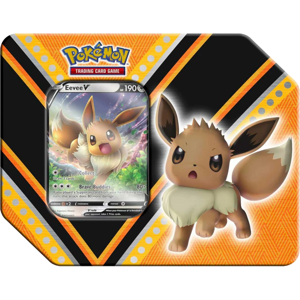 You can add more powerful Pokémon V to your Pokémon Trading Card Game collection with the Pokémon TCG: V Powers Tin. There are three different tins to choose from—will you pick the gigantic crushing strength of Eternatus V, the peerless courage of Pikachu V, or the loyal heart of Eevee V? Whichever you chose, each of these fantastic tins contains a powerful Pokémon V and a selection of Pokémon TCG booster packs to provide support for these mighty Pokémon.